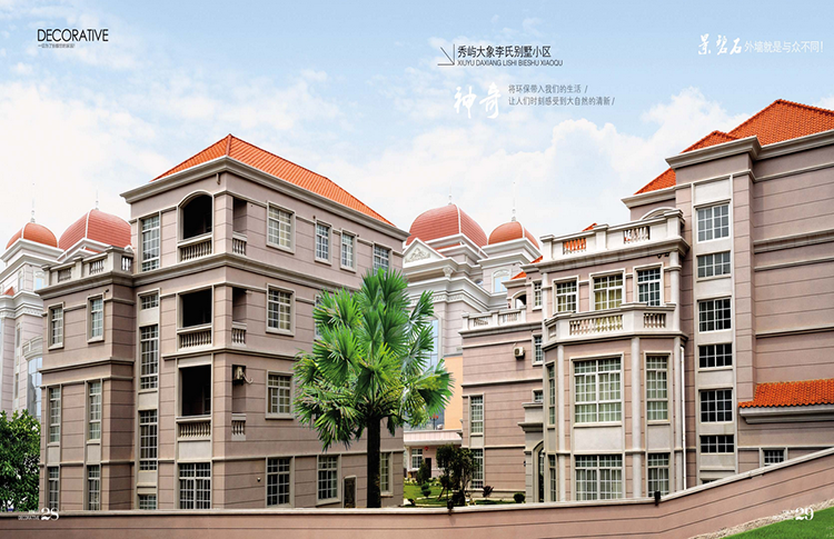 適合住宅、別墅、酒店、辦公室等建筑的內(nèi)外墻裝飾用,以及外墻外保溫體系飾面。